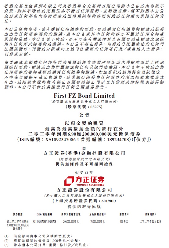 方正證券境外債回購(gòu)公告